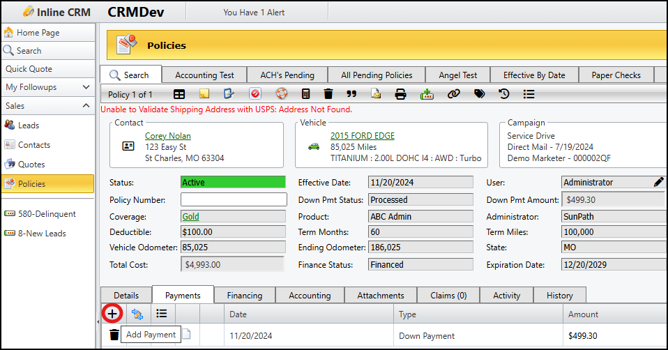 icon to locate the customer with contract number, finance account, first/last name etc.